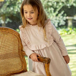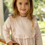 The Lucie Dress in Blush Pink is a classic silhouette with a sweet frill detailing along the chest. Featuring softly gathered sleeves and a full skirt, it’s made for special moments and everyday twirls alike.