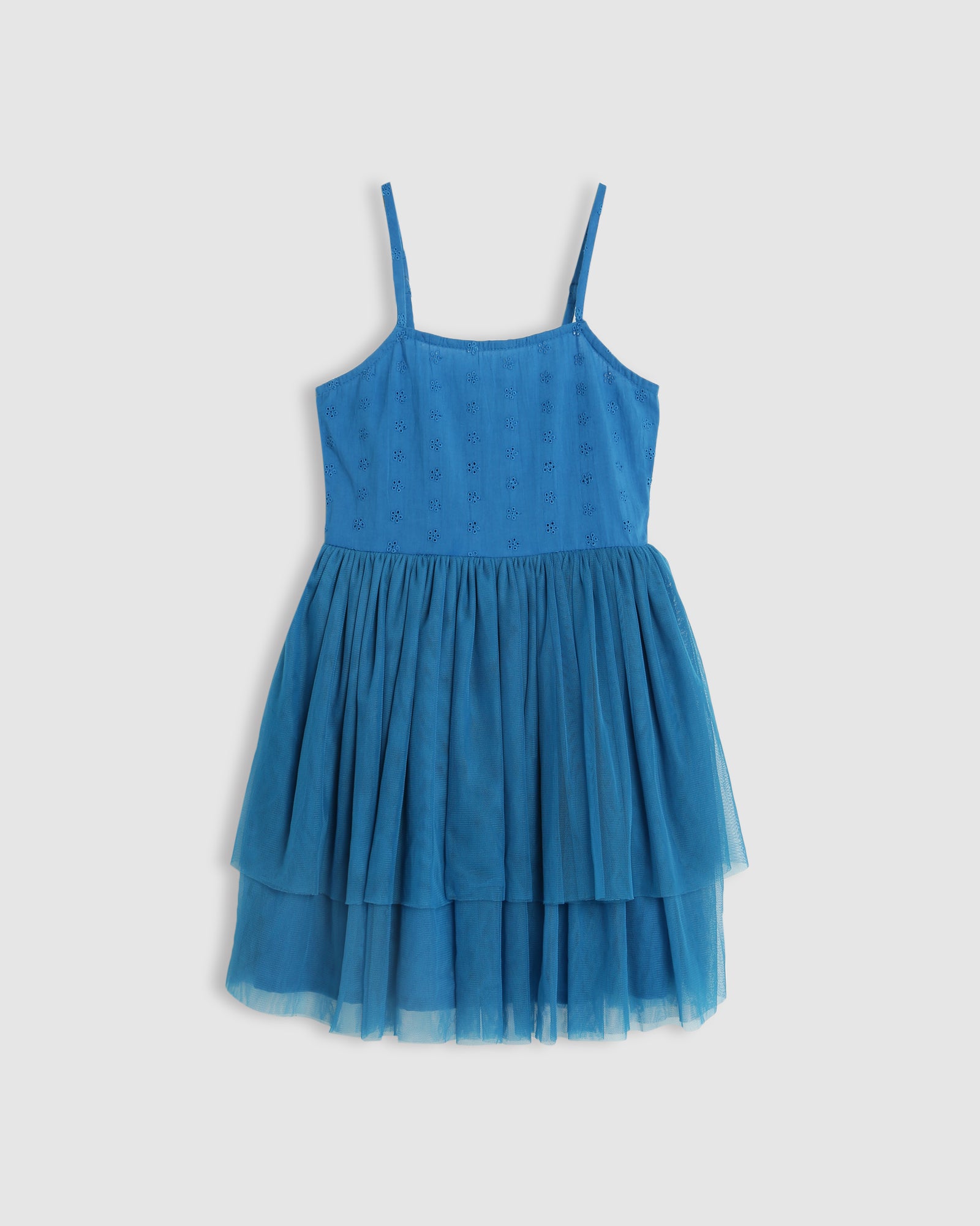 Twirl into enchantment with our Alessandra Tutu in Electric Blue... the most divine broderie anglaise fabric for the top and a tulle fabric skirt. It is the perfect ensemble for your little one to dance through sunny days with grace and style.