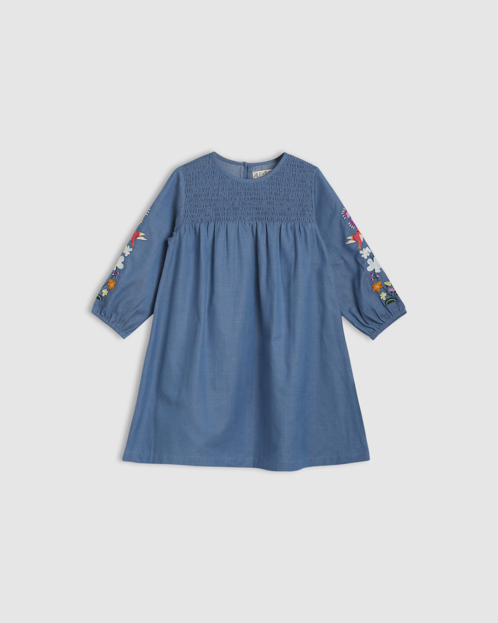Embrace the beauty of winter days with the Amelia Dress, a perfect companion for creating cherished winter memories. Stop and smell the flowers with this sweet little embroidered flower dress made from the most perfect blue chambray.