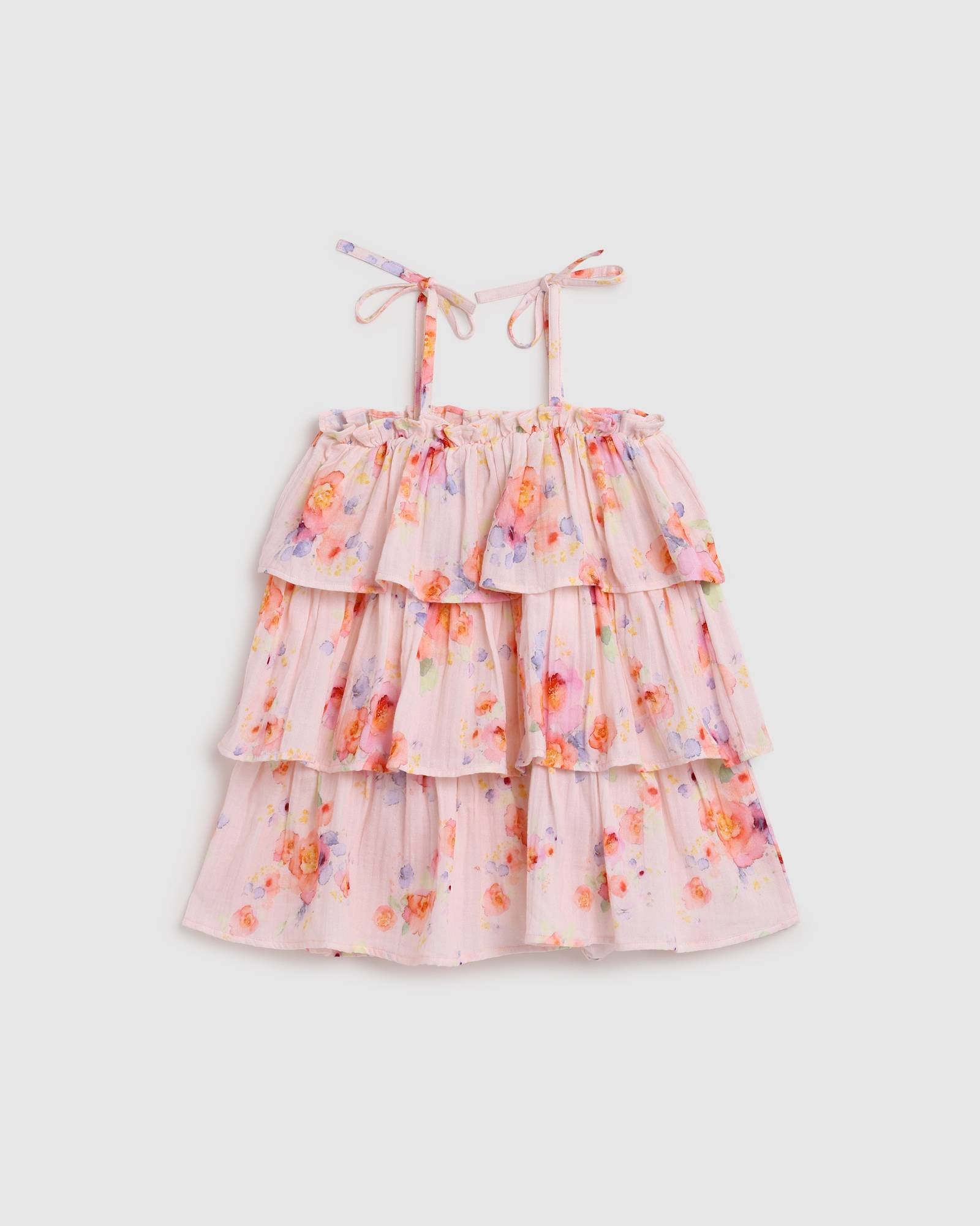 The Lucia Dress in Roses is a vibrant and playful design, perfect for sunny days and special occasions. Featuring adjustable tie straps and tiered ruffles adorned with our beautiful roses pattern, this dress is as fun as it is stylish.