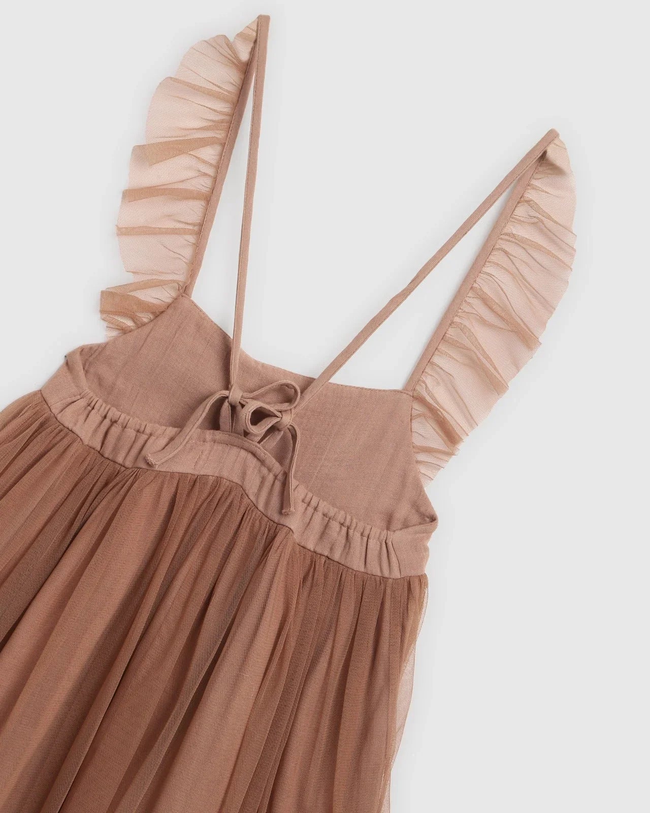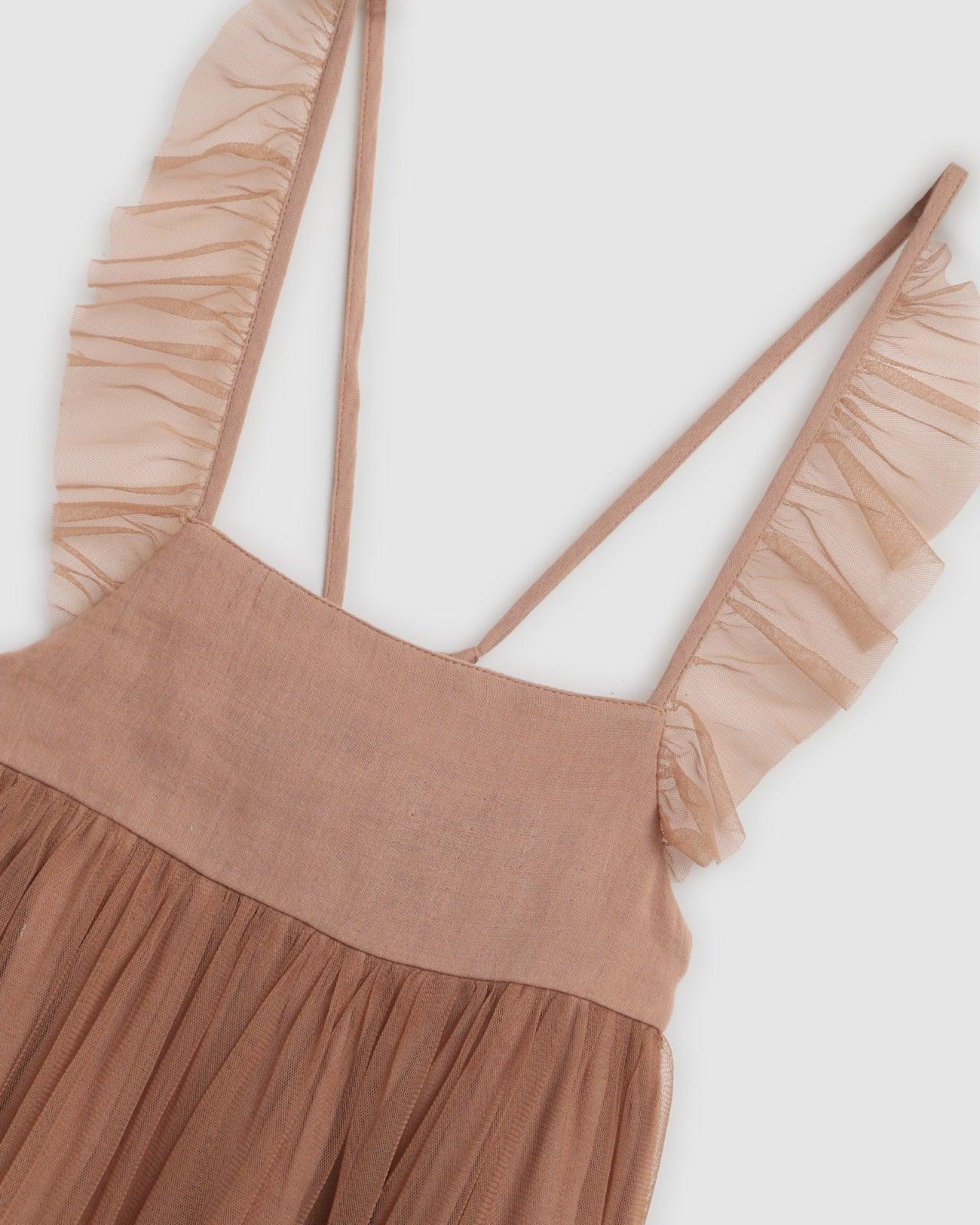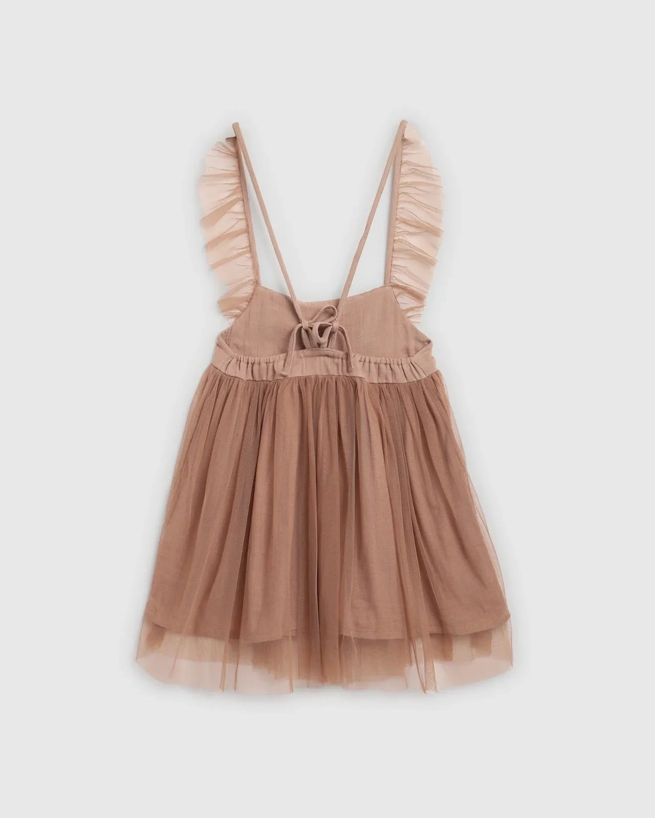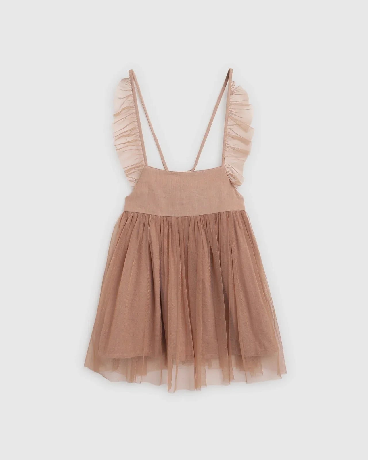 Summer 24 Let your little one twirl through life's wonders in the Cher Tutu Dress in Mocha. This divine creation seamlessly blends the comfort of soft cotton gauze with the dreamy allure of a tutu, promising a dance of delight with every step. Length: 65cm (Size 6) Soft cotton gauze & tulle The most divine tulle accents on sleeves Care: Cold machine wash. Do not tumble dry. Cool iron.
