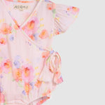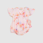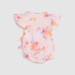 The Betty Playsuit in Roses features pretty flutter sleeves and a gorgeous wrap detail.