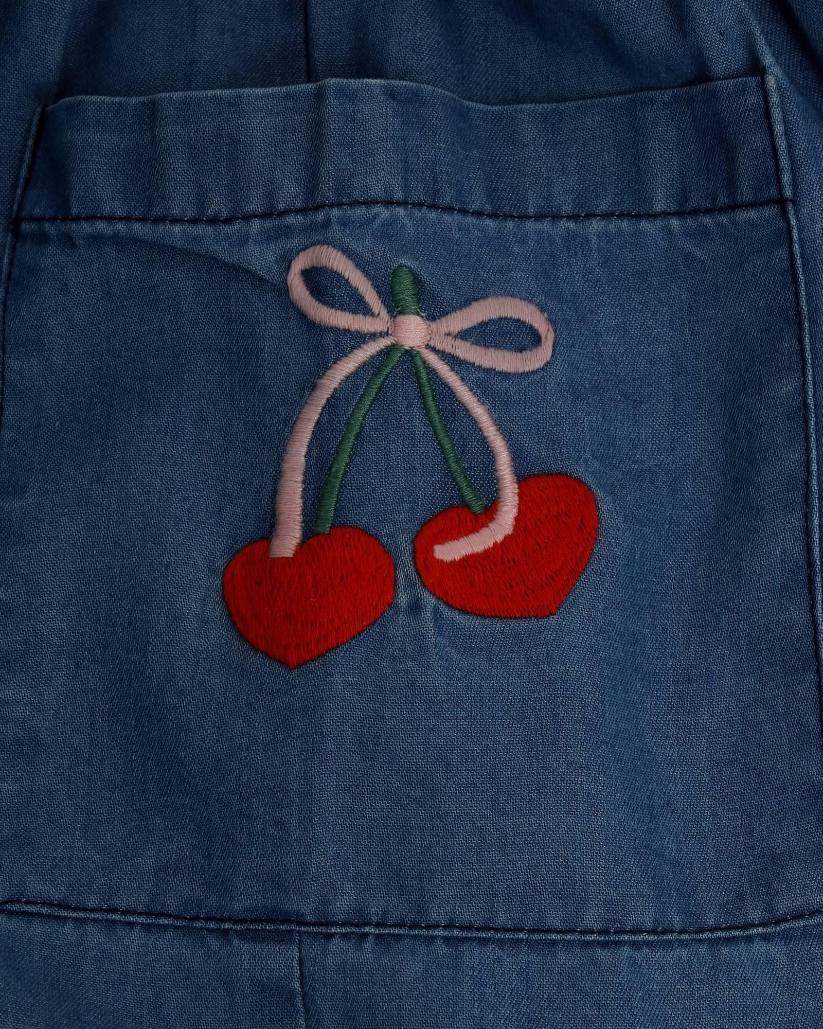 The Laura Skirt in Chambray is a playful and practical piece that’s perfect for everyday adventures. Featuring embroidered cherry details on the front pockets and a comfortable elastic waistband with a drawstring, this skirt combines style and functionality effortlessly. Made from lightweight chambray, it’s ideal for sunny days.