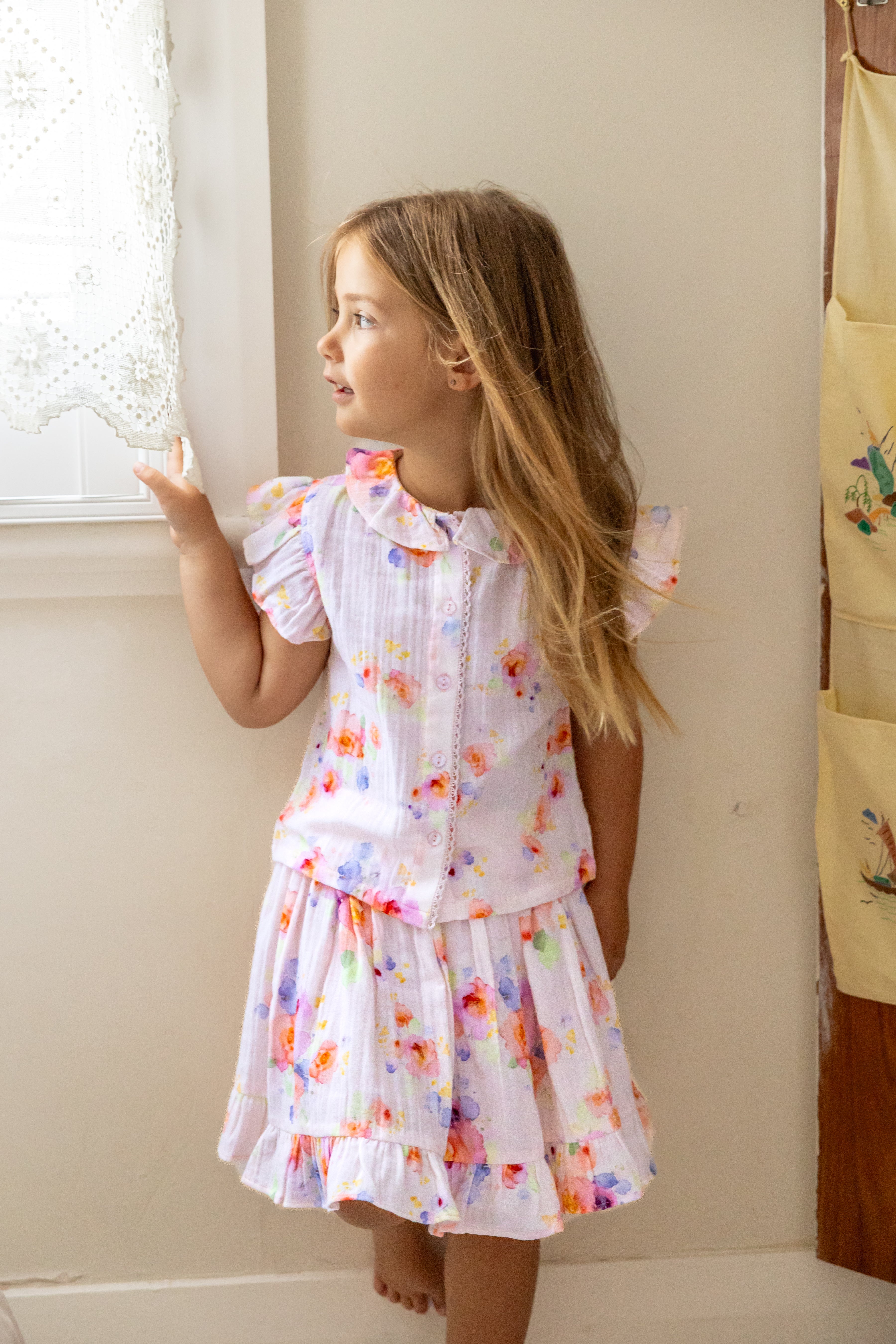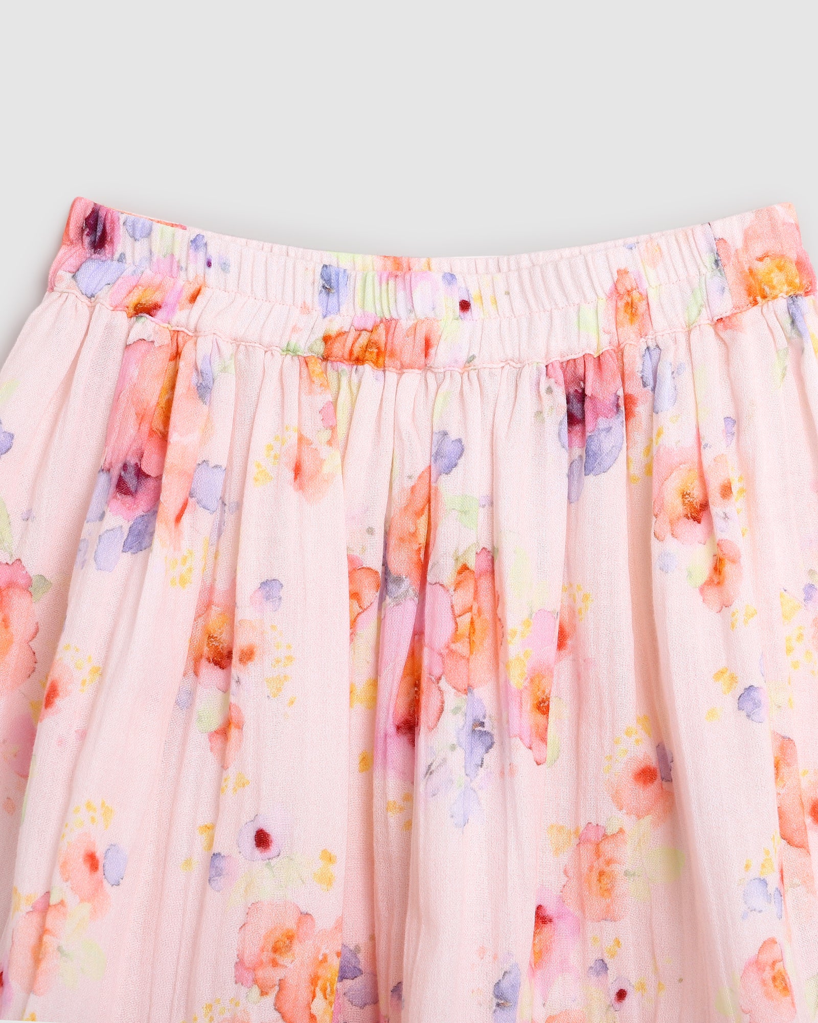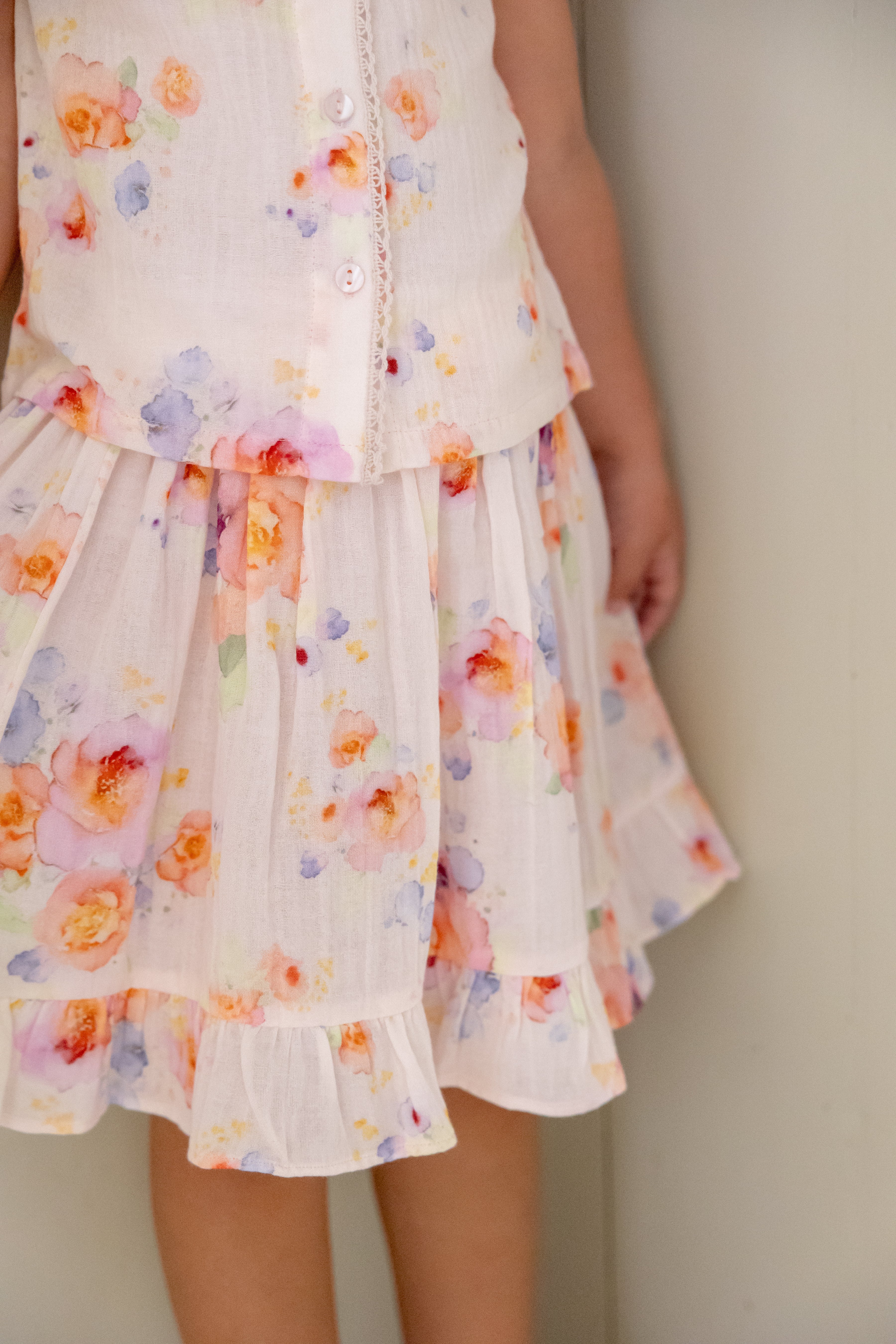 The Maria Pia Skirt in Roses is a delightful and versatile piece for your little one. Featuring a vibrant floral print, this skirt offers a playful yet elegant look. The elasticated waistband ensures a comfortable and secure fit, while the softly gathered design adds a touch of volume and movement.
