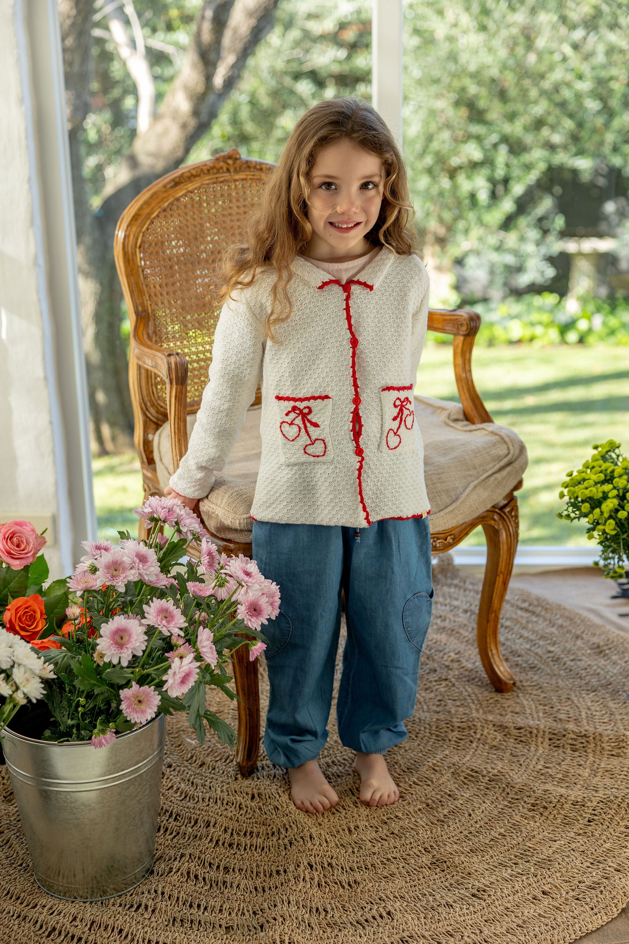 The Rosie Cardigan in Off White is adorned with a delicate lining of a super fun red and even cuter red love heart. With red buttons to fasten the cardi together, it is perfect for layering and feeling fabulous.