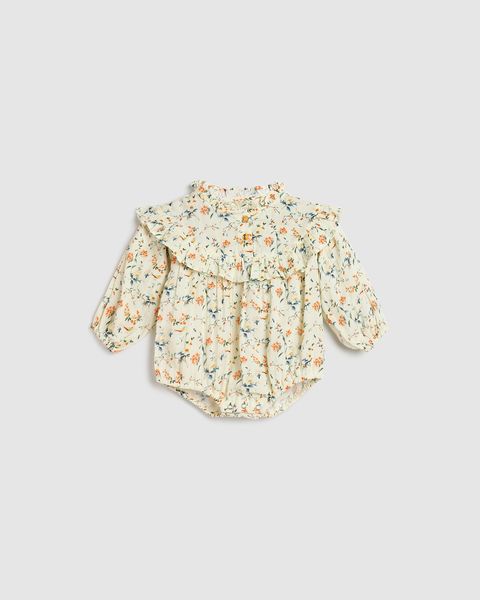 The Valerie Playsuit in Natural Bird is a timeless piece, featuring a delicate ruffle collar and softly gathered yoke with two buttons to close. Its gentle puff sleeves and elasticated legs ensure comfort for all-day play.